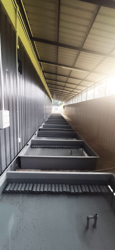 16 Nursery Ponds size 40 x 40 ft in a 0.8 hectars of land. 15 Pond maintain production and operate in a continuous.